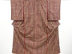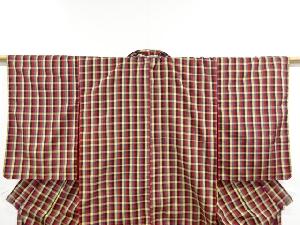 アンティーク 格子織り出し 手織り紬着物