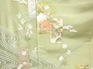未使用品 破れ色紙に鶴・草花模様刺繍色留袖