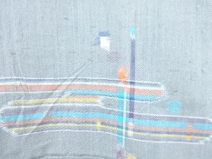 アンティーク ヱ霞に抽象模様織り出し手織り紬着物