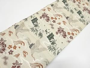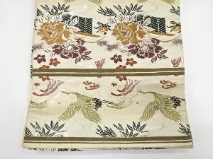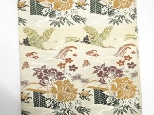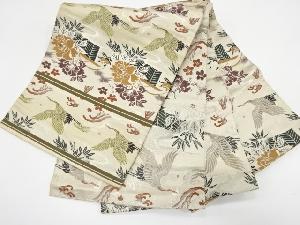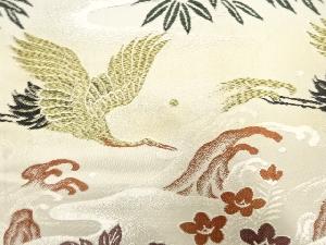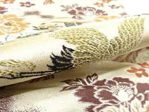 アンティーク 荒波に双鶴・牡丹模様織り出し丸帯(材料)
