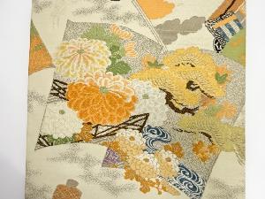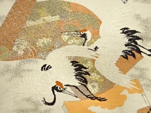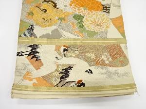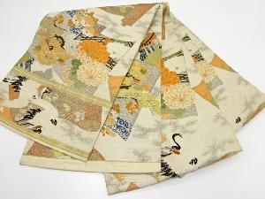 アンティーク 読み本に松・菊・鶴模様織り出し丸帯(着用可)