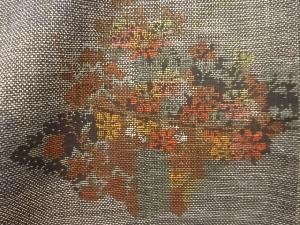 幕に花模様織り出し本場泥大島紬着物(5マルキ)
