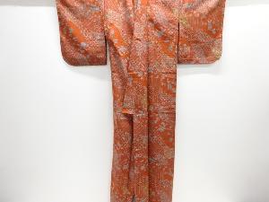 未使用品 和楽器に花鳥模様手織り紬単衣着物