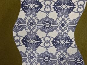 縮緬地型染よろけ縞に蝶・松竹梅模様名古屋帯