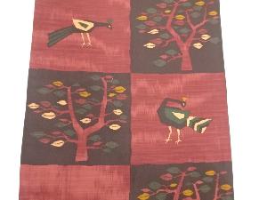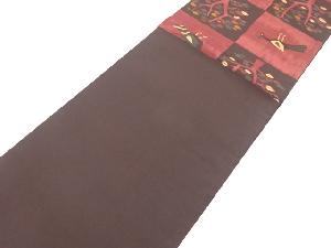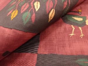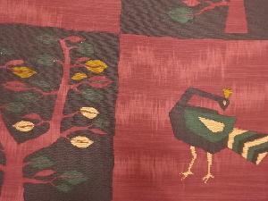 市松に孔雀・樹木模様織り出し袋帯