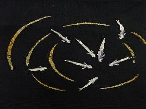紗紬すくい織鯉に波紋模様織出し名古屋帯