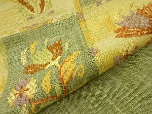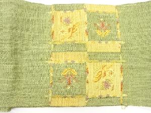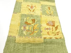 手織り真綿紬市松に草花模様織出し名古屋帯