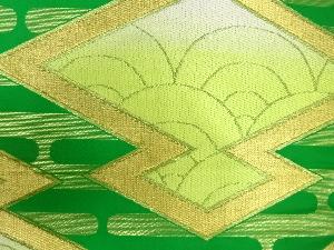 • 川島織物製 松皮菱にヱ霞・青海波模様織出し名古屋帯