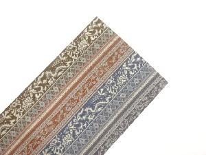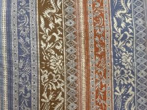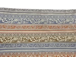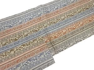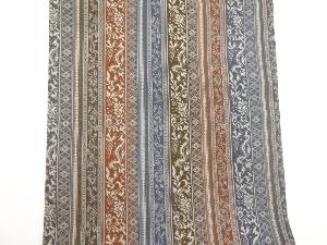 縞に草花模様織出し名古屋帯