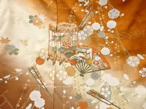 花に貝桶・扇模様刺繍訪問着仮絵羽(八掛付き)