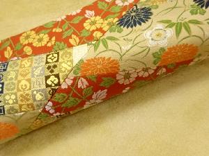 切り嵌め花々に宝・市松模様織出し名古屋帯