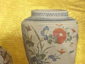 アンティーク 花瓶に香合模様袋帯(材料)