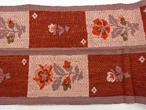 手織り紬変わり市松に花葉模様織出し名古屋帯