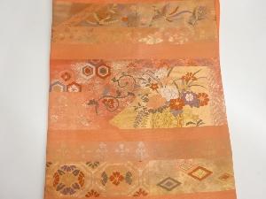 横段に花車・鳳凰・古典柄模様織出し名古屋帯