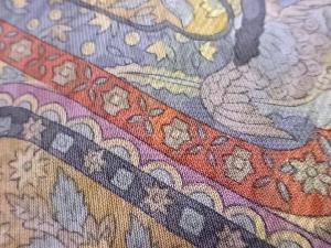 向かい鳥に花唐草・幾何学模様名古屋帯
