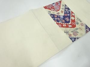 手織り紬手描き幾何学に抽象花模様開き名古屋帯(額縁仕立て)