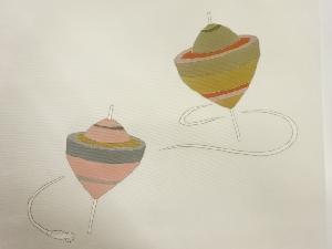 塩瀬金彩手描き独楽模様名古屋帯