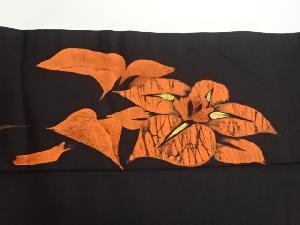 塩瀬手描き金彩花葉模様名古屋帯