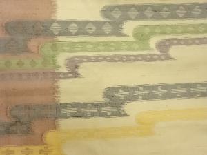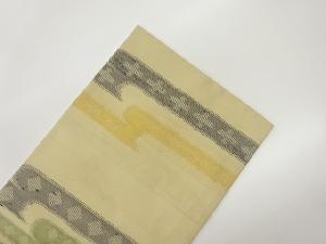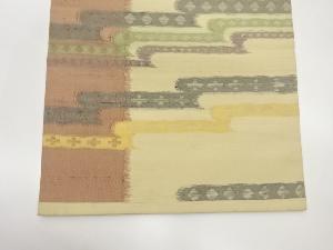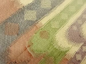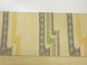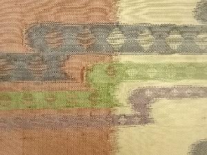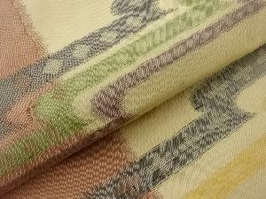手織り紬変わりヱ霞に幾何学模様織出し名古屋帯