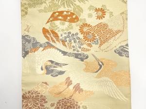 アンティーク 鶴に巻物・草花模様織り出し丸帯(材料)