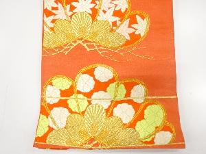 アンティーク 笠松に菊・楓・梅模様織り出し袋帯(着用可)