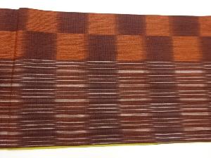 縞に市松模様織出しリバーシブル全通洒落袋帯