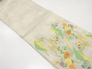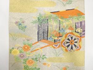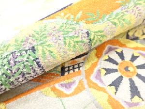 アンティーク 綴れ 御所車・秋草・藤模様織り出し袋帯(材料)
