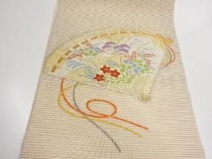 絽綴れ檜扇に秋草模様織出し名古屋帯