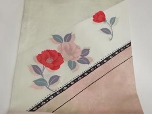 椿に斜線模様織出し名古屋帯