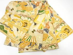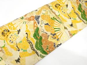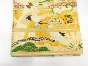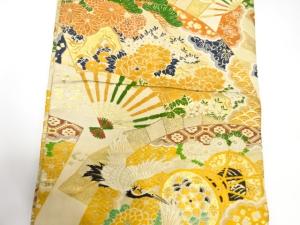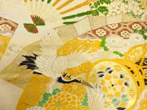 アンティーク 扇に鶴・鼓模様織り出し丸帯(材料)