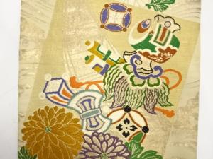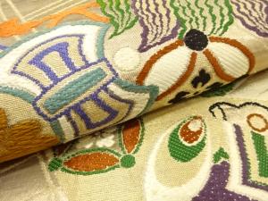アンティーク 色紙に宝船・菊模様織り出し丸帯(材料)