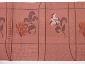 変わり横段に花唐草模様織出し名古屋帯