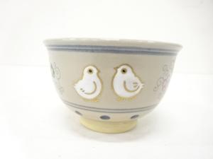 京焼 前田宝泉造 金彩色絵 花鳥 茶碗