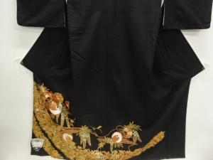 未使用品 鼓に花鳥模様留袖(比翼付き)