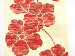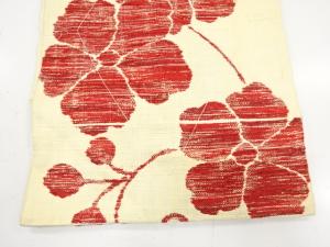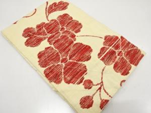未使用品 手織り真綿紬 花唐草模様織り出し 名古屋帯