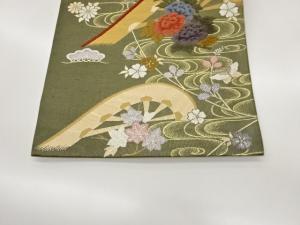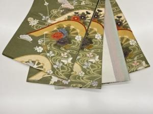 流水に片輪車・草花・蝶模様織出し袋帯