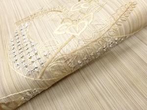汕頭刺繍花葉に幾何学模様開き名古屋帯(額縁仕立て)