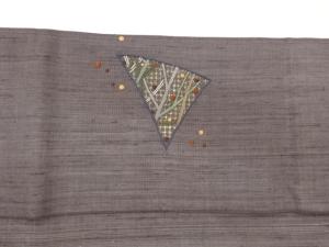 手織り紬汕頭刺繍幾何学模様名古屋帯