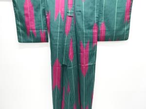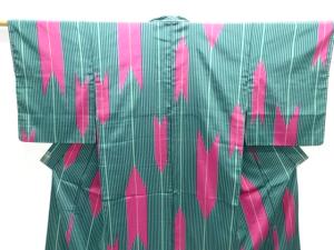 大正ロマン 縞に矢羽根絣織り出し着物
