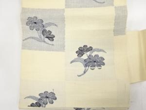 アンティーク 手織り紬 変わり市松に草花模様織り出し名古屋帯