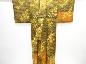 縮緬地 草花模様付け下げ小紋着物