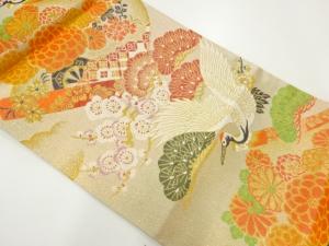 アンティーク 松梅に鶴模様織出し丸帯(着用可)