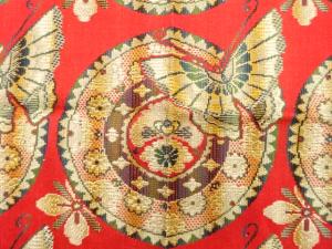 アンティーク 蝶に華紋織り出し 八寸帯地反物