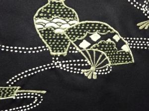 扇に壺・組紐模様 刺繍 一つ紋 絵羽織