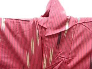 大正ロマン 縞に矢羽根絣織出し着物
