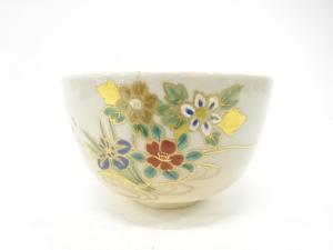 京焼 橋本紫雲造 色絵 花束流文 茶碗