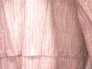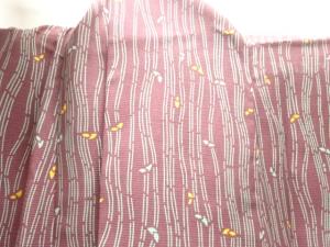 駒絽変わり縞に葉模様小紋着物