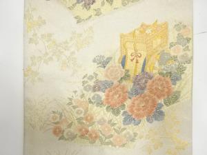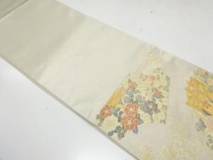 アンティーク 地紙に御所車・笙・草花模様織り出し袋帯(材料)