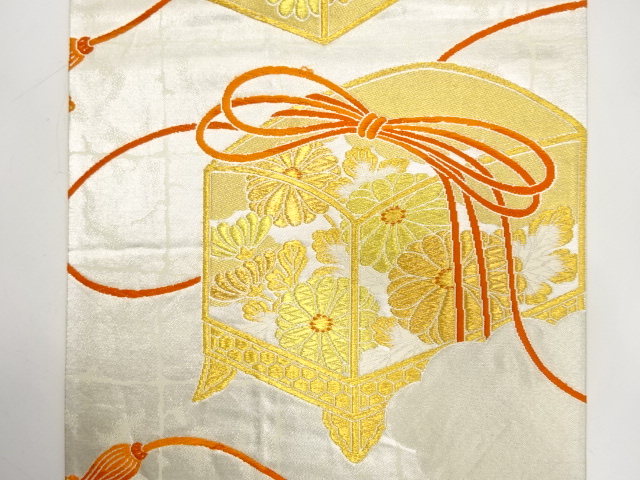 アンティーク 手箱に菊模様織出し袋帯(材料)  new