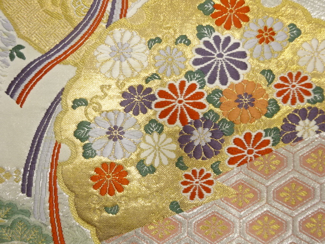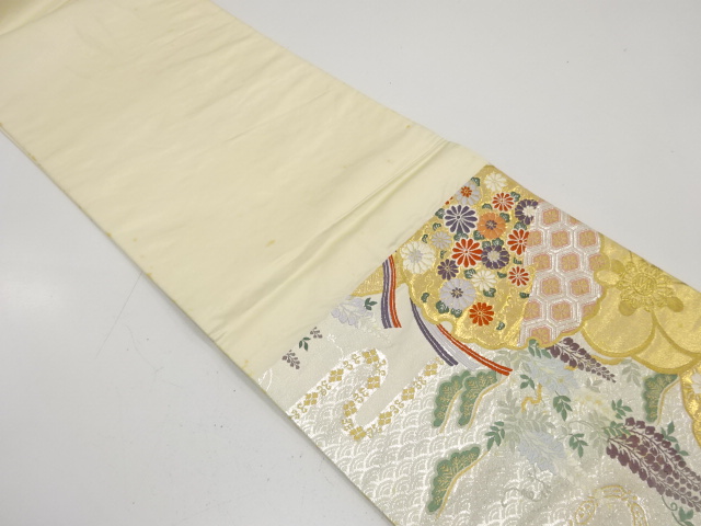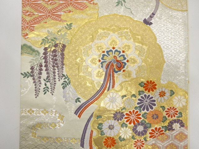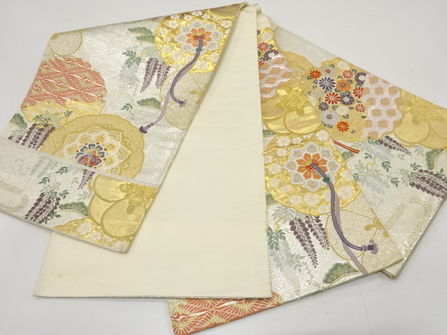 アンティーク 鏡裏に菊・藤・古典柄織り出し袋帯(材料)  new